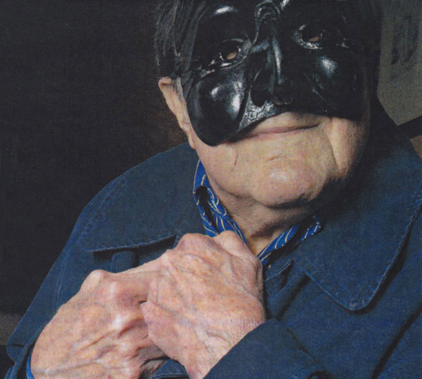 Aldo con la maschera appartenuta al famoso Antonio Petito e a lui regalata